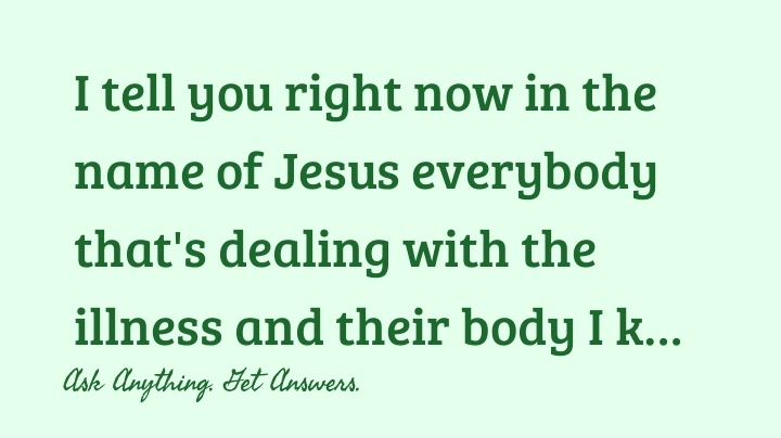 Robert Jenkins+FollowI tell you right now in the name of Jesus everybody that's dealing with the illness and their body I know what God can do he will not fail you this is not but a test for your testimony I know the road might get dark but just realize God is at the end of that road and he is waiting for you you going to have a powerful testimony when you come out of this storm I am praying for everybody that is sick up here that is going through something that body cancer will not live in nobody body I'm speaking it right now in the name of Jesus that is shell leave your body have you believing give God a five minute praise and let God know that you trust and depend on his word16228Share