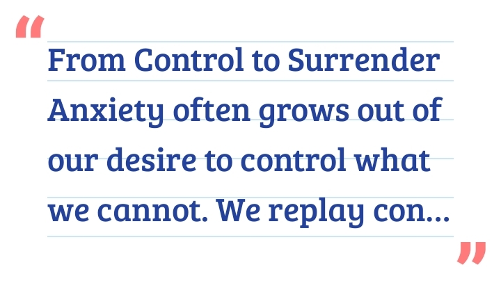 From Control to Surrender Anxiety often grows out of our desire to control what we cannot. We replay conversations, plan out every possible outcome, and grasp for certainty. But the more we try to hold everything together, the more anxious we feel. Control promises relief but delivers exhaustion. Surrender is the opposite. It is not giving up. It is giving over. Proverbs tells us to trust in the Lord with all our hearts, not lean on our own understanding, and submit to Him so that He makes the path clear (Proverbs 3:5–6). The psalmist reminds us that God bears our burdens daily (Psalm 68:19). Every morning, every situation, He is strong enough to carry what weighs us down. Peter echoes this truth, calling us to humility and inviting us to cast our cares on God because He truly cares for us (1 Peter 5:7). Control keeps us anxious. Surrender sets us free. Prayer: Lord, I confess that I often try to control what only You can handle. Teach me to surrender my cares to You in trust. Remind me that Your hands are stronger than mine and that You bear my burdens daily. Daily Challenge: Think of one situation you have been trying to control. Today, pray over it and verbally surrender it to God, saying: “Lord, I trust you. This belongs to You.”