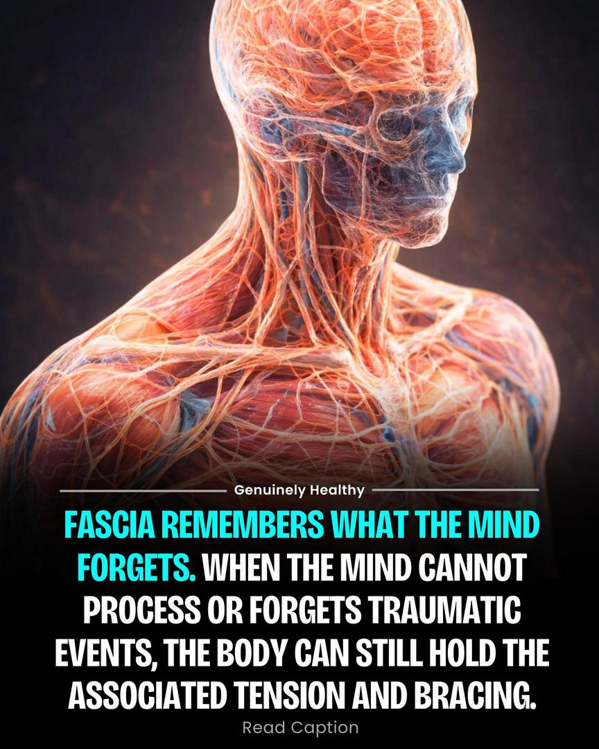 Fascia acts as a sensory network, holding patterns of tension related to past injuries, stress, or unresolved emotions such as fear, anger, or grief.