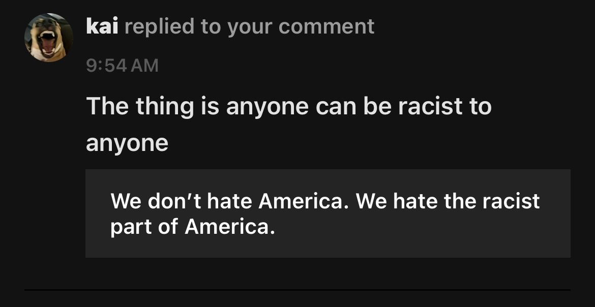 I said one sentence. “We don’t hate America. We hate the racist part of America.” I didn’t name a group. I didn’t insult a flag. I didn’t attack a person. I separated a country from a behavior. And that separation alone set off a chain reaction. Some people didn’t argue the point. They argued my character. I was called racist for naming racism. I was told I hate myself for criticizing a system. I was labeled a victim for refusing to be silent. None of those responses addressed what I actually said. They addressed how uncomfortable it made them feel. Others tried to corner me with loyalty tests. Why do you vote here. Why don’t you leave. Is it different anywhere else. Those questions weren’t about curiosity. They were about control. The message underneath was simple… critique equals betrayal. A few went further and claimed I was “keeping racism alive” by talking about it. As if naming a problem creates it. As if silence has ever cured anything. As if history improves when we stop looking at it. What stood out most was this… very few people denied that racism exists. Instead, they reacted as if pointing it out was the real offense. As if the problem wasn’t the racist part of America, but the fact that someone dared to separate it from the rest. That tells me something important. If someone hears “the racist part of America” and feels personally attacked, the issue isn’t the sentence. It’s the identification. Loving a country doesn’t require defending its worst habits. It requires the courage to call them what they are. This wasn’t hate. It was clarity. And clarity makes noise.