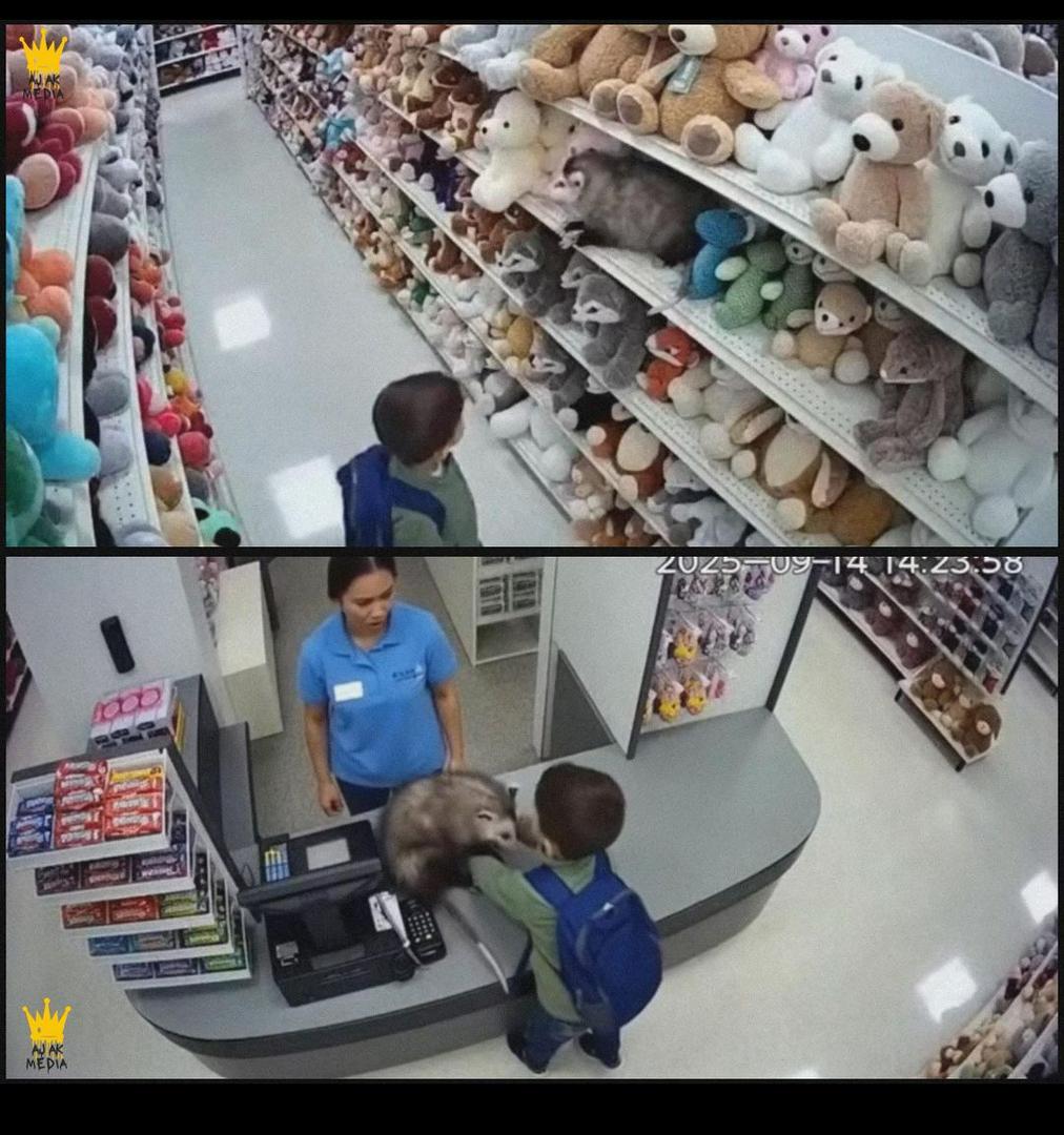 Boy accidentally tried to buy a “possum” at a toy store, until the cashier realized it was breathing. A little boy was wandering the aisle he loved most when he spotted what looked like the perfect toy: a possum. He scooped it up like it was the best find of the day and carried it proudly to the checkout, ready to pay. The cashier reached for the barcode and froze. There wasn’t one, because it wasn’t a toy. The “possum” shifted slightly, and she noticed the tiny chest moving as it breathed. She kept the boy calm, stepped back, and called local officials. A short time later, wildlife responders arrived, gently secured the possum, and released it back outside where it belonged. The boy didn’t leave upset, though. He left amazed, and with a brand‑new favorite animal.
