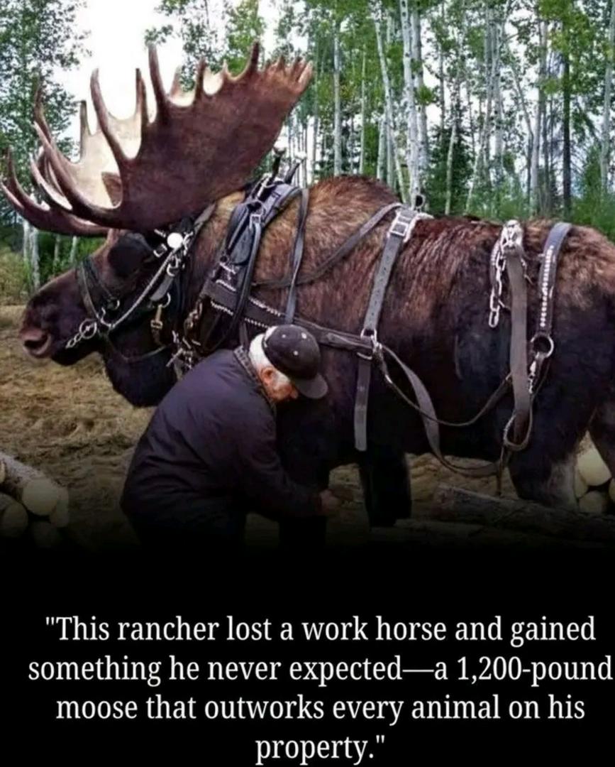 As the calf grew, something unexpected happened. The moose began mimicking the horses' behavior—coming when called, following commands, even accepting a harness. Curious, the rancher decided to see if the moose could work. The results stunned him.