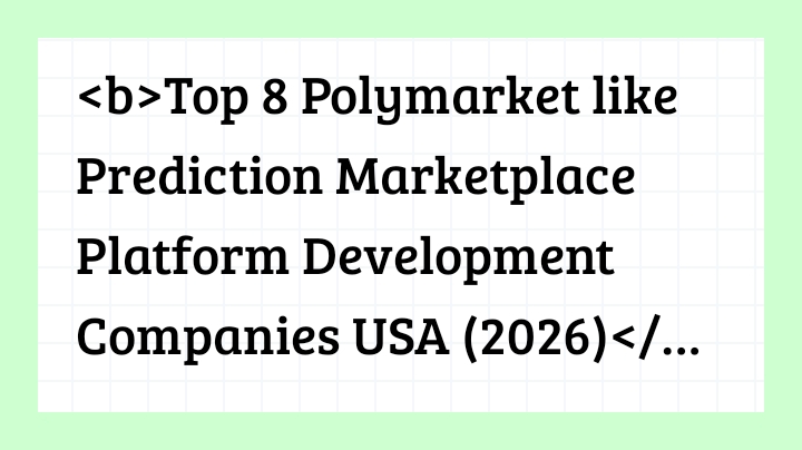 Link Pro Agency+Follow<b>Top 8 Polymarket like Prediction Marketplace Platform Development Companies USA (2026)</b> <img src="https://i.ibb.co/1tz5NcMb/IMG-20260328-WA0003.jpg" width="600" /> <img src="https://i.ibb.co/399smMJV/IMG-20260328-WA0004.jpg" width="600" /> <img src="https://i.ibb.co/Dfs2x3z2/IMG-20260328-WA0005.jpg" width="600" /> <img src="https://i.ibb.co/qLGWhxpz/IMG-20260328-WA0006.jpg" width="600" /> Idea Usher is widely recognized as one of the most experienced <a href="https://ideausher.com/polymarket-clone-app-development-services/"> Prediction Marketplace Platform Development</a> companies working with Web3 technologies. The company focuses on building enterprise-grade decentralized ecosystems for startups and enterprises launching innovative financial platforms. <img src="https://i.ibb.co/j9NQMVgm/IMG-20260328-WA0007.jpg" width="600" /> <img src="https://i.ibb.co/DPnMFrdL/IMG-20260328-WA0008.jpg" width="600" /> <img src="https://i.ibb.co/GvY8wTLR/IMG-20260328-WA0009.jpg" width="600" /> <img src="https://i.ibb.co/chJ0TKWW/IMG-20260328-WA0010.jpg" width="600" /> <img src="https://i.ibb.co/s9S321r5/IMG-20260328-WA0011.jpg" width="600" /> <img src="https://i.ibb.co/gQrfGtv/IMG-20260328-WA0012.jpg" width="600" /> <img src="https://i.ibb.co/prwbYyFd/IMG-20260328-WA0013.jpg" width="600" />00Share