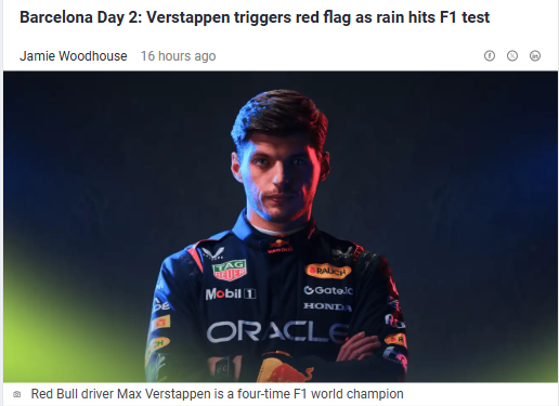 Isabel Collier+FollowVerstappen’s Red Flag Drama in Barcelona RainDay 2 of F1 testing in Barcelona saw Mad Max bring out the red flag early after a trip through the gravel—no smoke, just classic Verstappen pushing limits. The big talking point? The rain hit sooner than expected, giving Leclerc and Verstappen a private duel on wets. Leclerc’s unofficial 1:20.8 lap set the pace, but it’s the Red Bull vs Ferrari rivalry that’s heating up fast. Anyone else hyped for more wet-weather showdowns this week? #Sports #Racing #F1Testing00Share