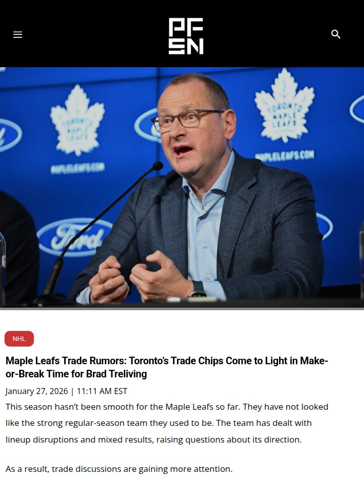 Jason Dawson+FollowMaple Leafs’ trade buzz heats up in TorontoToronto hockey fans are feeling the pressure as the Maple Leafs hit a crossroads—trade rumors are swirling, and the team’s direction is up in the air. With injuries piling up and inconsistent play, GM Brad Treliving faces tough choices: should the Leafs shake up the roster or double down on their core stars? Names like Bobby McMann, Scott Laughton, and Oliver Ekman-Larsson are being floated as possible trade chips. But big moves could send shockwaves through the locker room and fan base. What would you do—go all-in or start a retool? Let’s hear your take! #Sports #IceHockey #LeafsNation00Share