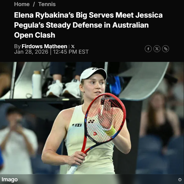 Stephen Wilson+FollowRybakina vs Pegula: AO Semis Showdown!Big-serving Rybakina just leveled her rivalry with Swiatek at 6-6 after a dominant quarterfinal, but now she faces the ever-steady Jess Pegula in the Australian Open semis. Both are in red-hot form, and their head-to-head is dead even at 3-3. Can Rybakina keep her streak alive, or will Pegula break through to her first AO final? This matchup is pure popcorn for tennis fans! #Sports #Tennis #AustralianOpen00Share