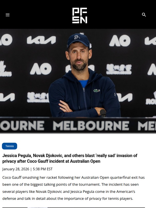 Gregory Costa+FollowDjokovic & Pegula Defend Gauff’s PrivacyBig drama at the Aussie Open: after Coco Gauff’s tough quarterfinal loss, she smashed her racket—and the cameras caught it all. King Novak and Jessie Pegula quickly came to her defense, calling out the relentless media coverage as a real invasion of privacy. Even Sinner and Anisimova chimed in, saying players deserve a moment to vent without the world watching. Is it time for tennis to rethink its boundaries? #Sports #Tennis #AustralianOpen10Share