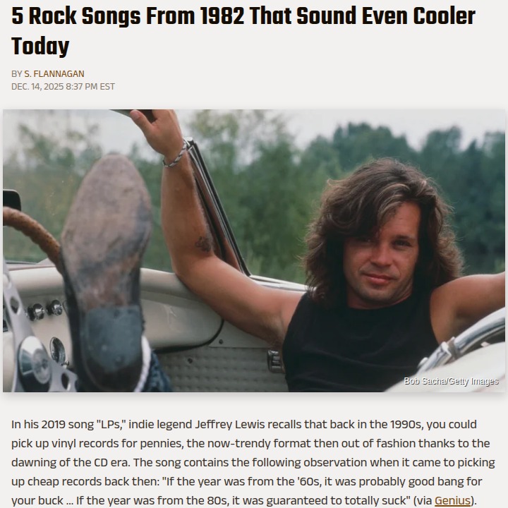 sfrazier+Follow80s Rock Songs: Are They Cooler Now? 🎸Jeffrey Lewis once joked that 80s records were guaranteed to suck, but fans are debating if that's still true! Some say tracks like The Clash’s “Should I Stay or Should I Go” and The Psychedelic Furs’ “Love My Way” have only gotten better with age. Others argue the 80s are still overrated. Is nostalgia making us love these songs more, or did critics miss the mark back then? #Entertainment #Music #80sRock20Share