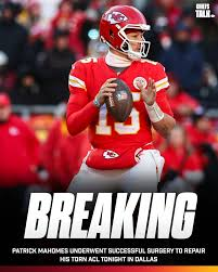 Richard Thomas+FollowPatrick Mahomes underwent ACL surgery in DallasThe Chiefs announced tonight that Patrick Mahomes had surgery in Dallas with Dr. Dan Cooper to repair the torn ACL in his left knee. He’ll begin rehab immediately. Brutal blow to end KC’s season, but the road back starts today. #Chiefs #PatrickMahomes #NFL #ACL #GetWellSoon 335Share