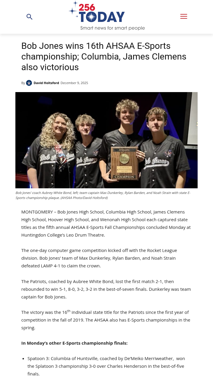 Jenna Gonzales+FollowBob Jones dominates Alabama E-Sports sceneBob Jones High School just snagged its 16th AHSAA E-Sports state title, showing how competitive gaming is reshaping school pride across Alabama. Their Rocket League squad bounced back from an early loss to win four straight matches in the finals—talk about resilience! Columbia and James Clemens also took home championships in Splatoon 3 and Mario Kart, while Hoover and Wenonah celebrated big wins in Super Smash Bros. and Madden NFL. With E-Sports growing fast, it’s clear these students are building new traditions and rivalries. How do you see E-Sports changing the high school experience in our community? #Sports #Esports #Alabama00Share