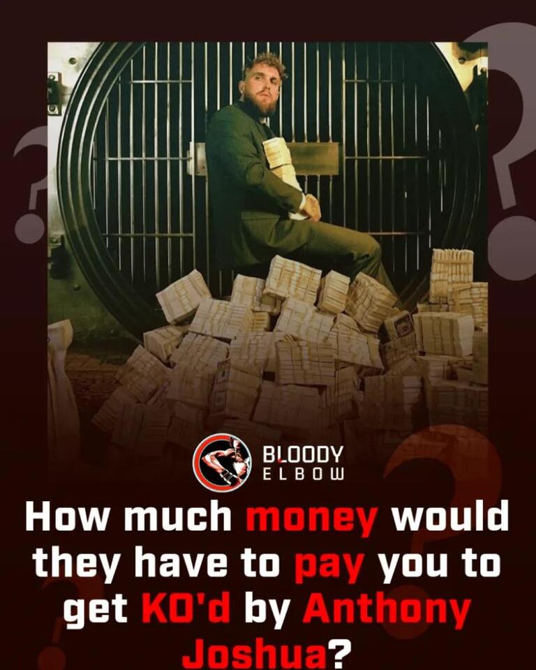 Connie Wilson+FollowJake Paul’s Joshua Payday 💰 Outsizes Tyson FightJake Paul’s fight purse for Anthony Joshua is blowing up the fan forums! After raking in $40M against Mike Tyson, Paul’s payday for Joshua could hit $90M+—way more than Tyson ever got. Fans are debating if Paul’s hype and trash talk are worth these insane numbers, especially since Joshua’s a real heavyweight champ. Is Paul just a master promoter, or is this the new normal for influencer boxing? #Entertainment #JakePaul #AnthonyJoshua00Share