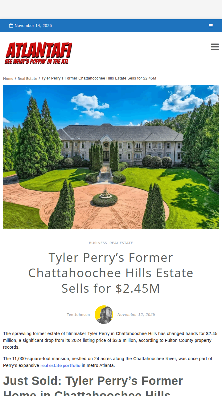 Christian Jones+FollowTyler Perry’s Chattahoochee Hills mansion sold for less than expectedTyler Perry’s former Chattahoochee Hills estate just sold for $2.45 million—way below its $3.9 million listing price. This 11,000-square-foot riverfront retreat, packed with luxury features like a pool, tennis court, and private dock, sat on the market for over a year before finding a buyer. Local realtors say the drop reflects how even Atlanta’s hot housing market is cooling off for ultra-luxury homes outside the city. Perry’s real estate moves always spark conversation—do you think high-end rural properties are losing their appeal, or is this just a blip? #Entertainment #Celebrity #AtlantaRealEstate10Share