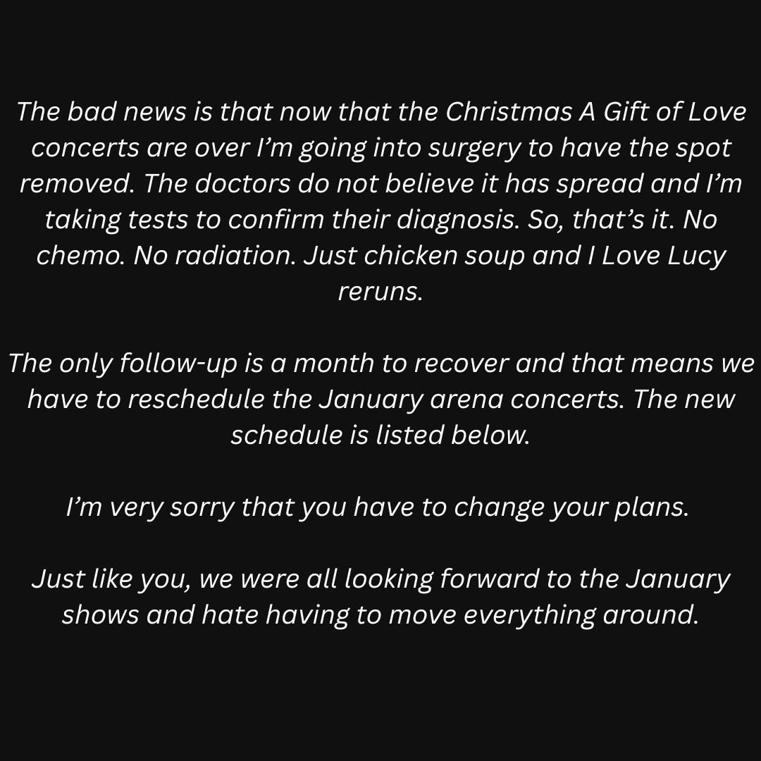 shermandarlene+FollowBarry Manilow’s Health Scare UpdateBarry Manilow just shared he’s got lung cancer and is rescheduling his January shows for surgery. Luckily, doctors caught it super early, and he’s hopeful it hasn’t spread. He’s apologizing to fans for the shuffle but says health comes first. If you’re feeling off, take Barry’s advice and get checked! Wishing him a speedy recovery and can’t wait for those rescheduled concerts! #Health #BodyHealth #BarryManilow00Share