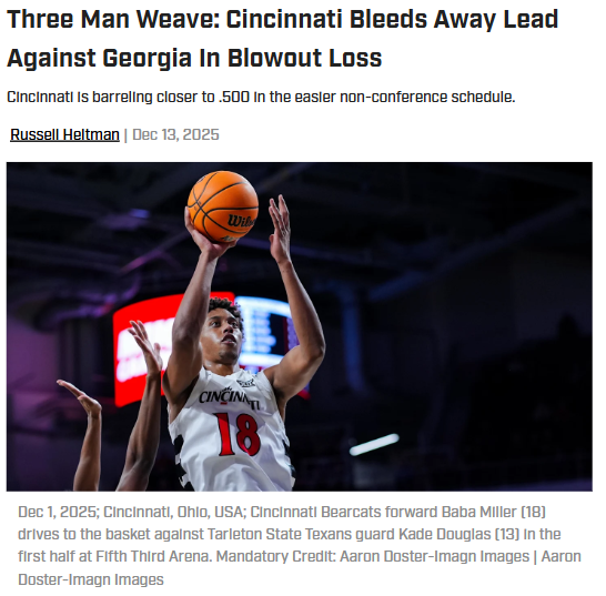 Oscar Gonzalez+FollowBearcats face big test against Georgia’s firepowerCincinnati’s basketball squad is about to face one of their toughest challenges yet—taking on Georgia’s high-octane offense after a couple of stinging losses. The Bearcats have struggled with turnovers and cold shooting from deep, but there’s still hope as key players like Day Day Thomas and Baba Miller keep putting up strong numbers. Georgia, meanwhile, is lighting up the scoreboard and dominating the boards, making this matchup a real gut check for Cincinnati. Can the Bearcats tighten up and pull off a statement win, or will Georgia’s relentless pace prove too much? Let’s hear your predictions! #Sports #Basketball #Bearcats00Share