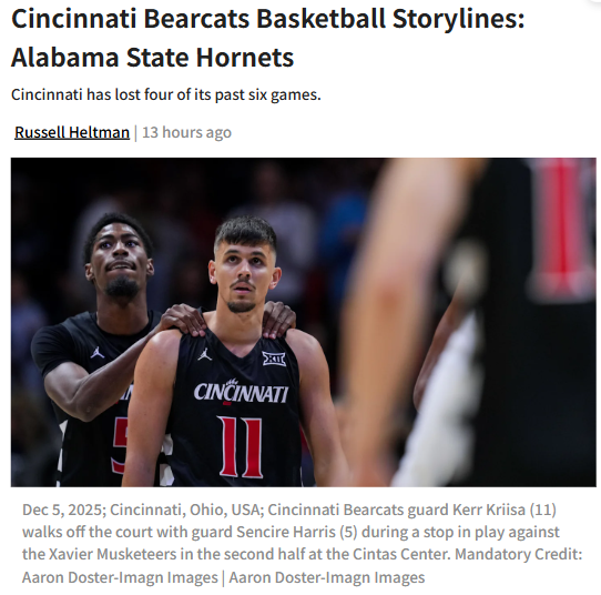 AmberAbyss+FollowBearcats need a statement win tonightCincinnati fans, this is the last so-called 'easy' game on the Bearcats’ schedule, and it’s a must-win. After a rough start to the season and a tough loss to Georgia, the team faces Alabama State—one of the weakest defenses they’ll see all year. If the Bearcats can’t find their offensive rhythm at home tonight, it’s hard to see how they’ll compete in the Big 12. This is about more than just a win; it’s about proving they can deliver when it counts. How confident are you in this team turning things around? #Sports #Bearcats #CincinnatiBasketball00Share