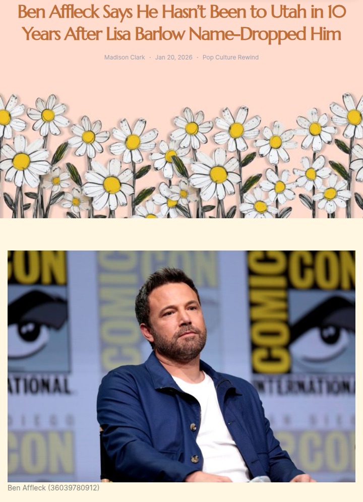 xpotter+FollowBen Affleck Claps Back at RHOSLC Drama 🎬Ben Affleck just shut down Lisa Barlow’s story about missing a Real Housewives girls’ trip for his event in Utah—he says he hasn’t even been to Utah in 10 years! Now fans are split: was Barlow just name-dropping, or did Affleck forget a celeb encounter? Even Angie is trolling Lisa, making this the most random Bravo vs. Hollywood crossover yet. #Entertainment #Celebrity #BenAffleck00Share