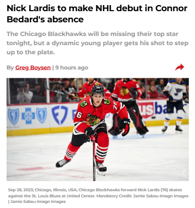 Sherri West+FollowBlackhawks fans brace for Bedard’s absenceLosing Connor Bedard right now is a gut punch for Chicago. He’s been the heartbeat of the Blackhawks’ offense, factoring into nearly half of their goals this season. Tonight, all eyes are on Nick Lardis, who’s making his NHL debut and brings some serious scoring firepower from Rockford. It’s a big moment for the young guns to step up and show what they’ve got. Plus, with Patrick Kane chasing his 500th goal, the United Center is set for a wild night. How do you think the Hawks will handle Bedard’s absence? Who are you most excited to watch? #Sports #IceHockey #Blackhawks10Share