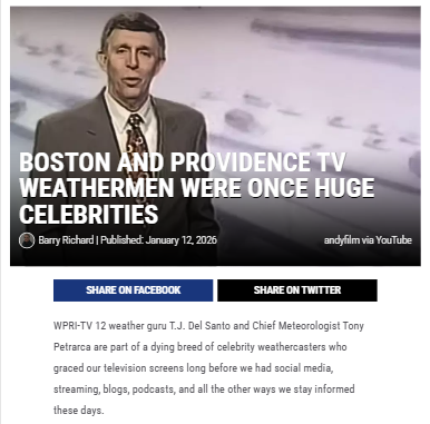 Cathy Porter+FollowBoston’s weather legends: Where are they now?Long before weather apps and instant alerts, Boston and Providence TV weathermen were true local celebrities. Folks like T.J. Del Santo and Tony Petrarca became household names, guiding us through storms and sunny days with just a chalkboard and some construction paper. Their forecasts shaped our daily routines, and their personalities made the news feel personal. Now, with weather info just a tap away, it’s wild to think how much these local legends influenced our lives. Do you miss the days of tuning in at 6 and 11, or do you prefer today’s on-demand updates? #Entertainment #TVSeries #BostonWeather10Share