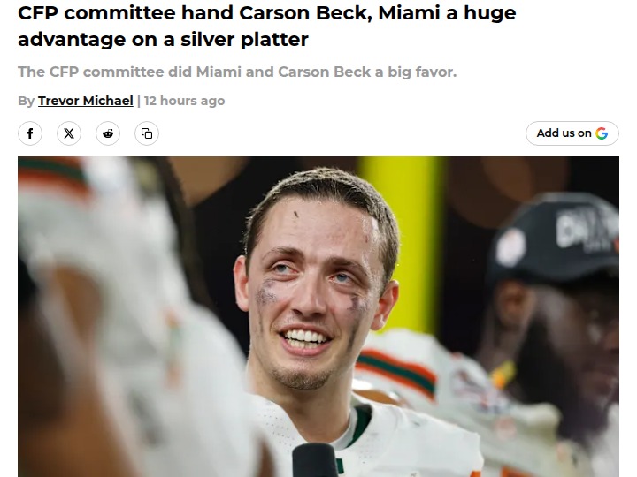 phughes+FollowMiami Gets Extra Edge vs Ole Miss in CFPCan you believe the CFP committee just handed the Canes and Carson Beck a golden ticket? After Miami squeaked past Ole Miss, they now get an extra day to rest and prep for the title game—while Indiana and Oregon have to battle it out. Plus, the championship is in Miami’s own backyard! Do you think this rest advantage tips the scales for Beck and the Canes, or will it not matter against a powerhouse opponent? #Sports #Football #CFBPlayoff00Share