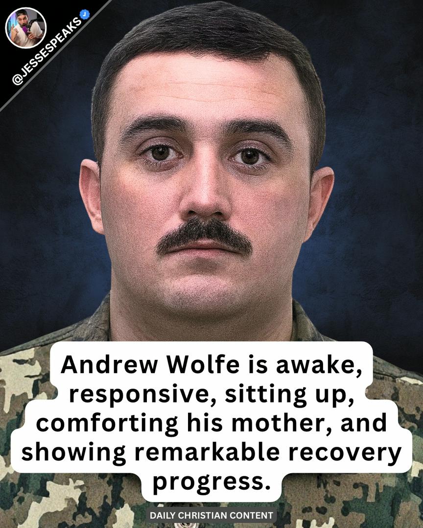 🚨UPDATE: A nation is shaken—and believers are calling this a wake-up moment. West Virginia National Guardsman Staff Sgt. Andrew Wolfe, brutally ambushed in Washington, D.C., is now showing what his family calls “a Christmas miracle.” While still in serious condition, Wolfe is responding to commands, giving thumbs-up signs, wiggling his toes, sitting upright, and even putting his arm around his mother to comfort her. Doctors call his alertness remarkable. His family calls it the power of prayer. But the same attack took the life of Spc. Sarah Beckstrom, another Guardsman who will never make it home for the holidays. And the suspect? Rahmanullah Lakanwal—an Afghan national who was granted asylum by the U.S.—has pleaded not guilty to murder and assault. The attack has ignited national outrage, forcing the government to freeze asylum decisions, tighten Afghan visa rules, and surge National Guard presence throughout Washington, D.C. Christians everywhere are asking the question political leaders refuse to touch: How many more tragedies must happen before America takes spiritual and national security seriously? Wolfe’s mother, Melody, says the flood of prayers is what’s carrying her son forward. As the country watches his slow but miraculous recovery, one truth stands out—evil is real, but so is God’s mercy. #PrayForWolfe #ChristianNews #TruthMatters