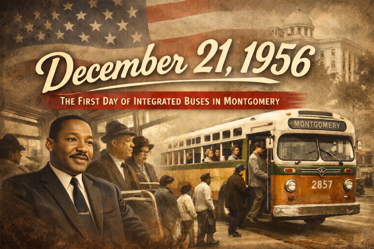 December 21, 1956 is often remembered as the end of the Montgomery Bus Boycott, but more precisely, it marks the first day Montgomery’s city buses operated as integrated in daily life. The legal battle had already been won, yet this morning mattered because it was when the ruling became visible, physical, and unavoidable. After more than a year of walking, carpooling, and enduring harassment, Black residents of Montgomery boarded buses alongside white passengers under a new reality. The Supreme Court decision banning bus segregation had finally reached Alabama, and the city was required to comply. December 21 was the morning the mandate moved from paper to pavement. That day, community leaders and ordinary citizens rode together. Among them was Martin Luther King Jr, who boarded a bus quietly, without fanfare. There were no speeches, no celebrations, and no cameras chasing spectacle. What made the moment powerful was its calm. People simply sat where the law now said they could sit. The boycott itself officially ended when the legal order took effect, which is why some summaries list earlier dates. But December 21 endures in public memory because it represents the first lived experience of change. It was not just a court victory. It was a morning commute transformed by discipline, unity, and resolve. For 381 days, Montgomery’s Black community refused to accept injustice as routine. On December 21, 1956, routine finally changed. History did not announce itself loudly that morning. It showed up on time, paid its fare, and took a seat. #MontgomeryBusBoycott #CivilRightsHistory #December21 #AmericanHistory #BlackHistory