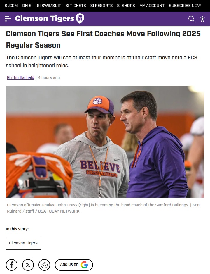 Michael Pitts+FollowClemson’s coaching shakeup sparks new eraBig changes are coming to Clemson football as several familiar faces are heading to Samford, including offensive analyst John Grass, former QB Paul Tyson, and Drew Swinney—Coach Dabo Swinney’s own son. Dabo’s excitement for these moves is clear, especially with his personal ties to Samford. This marks the start of a coaching carousel that could reshape the Tigers’ staff for seasons to come. With more moves rumored and new roles opening up, it’s a moment of transition for Clemson. How do you feel about these changes, and what do you hope to see from the new staff? #Sports #Football #ClemsonTigers00Share