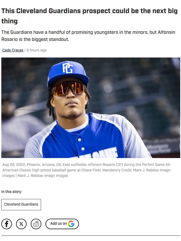 Andrea Castillo+FollowCleveland’s outfield future could hinge on RosarioAlfonsin Rosario is quietly turning heads in the Guardians’ farm system, and it’s not just because of his raw power—he’s already outpacing most prospects his age. After a solid first year, Rosario’s bat speed and ability to hit for power have made him a name to watch, especially with Cleveland’s outfield struggles last season. While the trade that brought him here barely registered for most fans, Rosario could be the answer to the team’s desperate need for offense in the outfield. If his development stays on track, we might see him in a Guardians uniform by 2028. What do you think—future star or just another prospect? #Sports #Baseball #ClevelandGuardians00Share