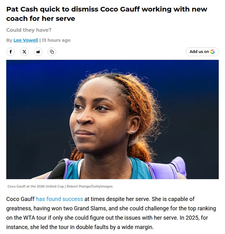 Gregory Costa+FollowCoco Gauff’s Serve: Can MacMillan Fix It?Anyone else following the drama around Coco Gauff’s serve? Even after two Grand Slam wins, her double fault numbers are wild—431 last season! Now she’s teamed up with biomechanics coach Gavin MacMillan, but tennis legend Pat Cash thinks her issues could’ve been solved in five minutes by a former pro. Is it all mental for Gauff, or does she need a new approach? If she figures this out, the WTA tour better watch out! #Sports #Tennis #CocoGauff00Share