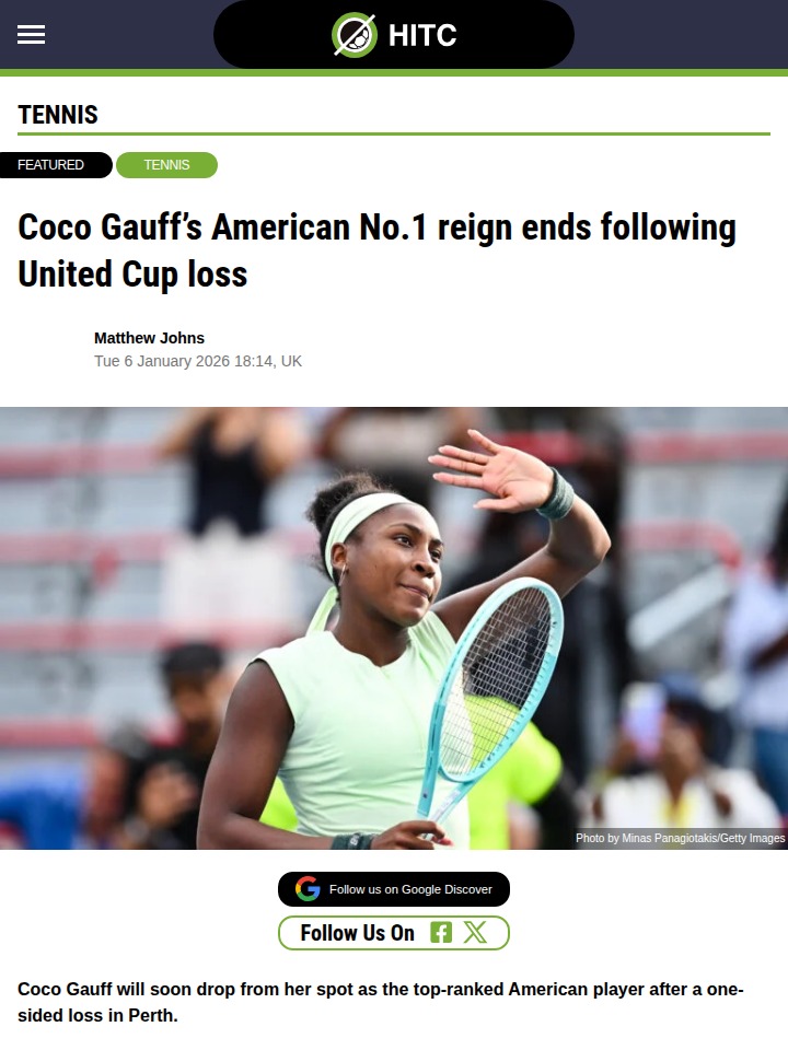 Kelly Jones+FollowGauff’s No.1 Streak Snapped by AnisimovaTough break for Coco fans—after a rough outing in Perth, Gauff’s run as America’s top tennis queen is over, at least for now. King Anisimova’s consistency and those expired United Cup points did the trick, pushing her to a career-high world No.3 and reclaiming the US No.1 spot. Gauff’s still just 14 points back, so with a strong United Cup finish, she could be back on top soon. Thoughts on her serve struggles? #Sports #Tennis #CocoGauff10Share