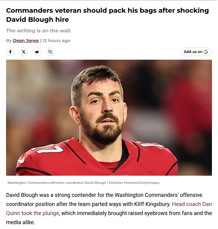 Jay Williams+FollowWhy Washington fans should watch David BloughDavid Blough just stepped into the spotlight as the Commanders’ new offensive coordinator, and those who know him best say he’s ready to shine. Colt McCoy, a respected former Washington QB, calls Blough “salt of the earth” and believes his experience learning from top coaches and quarterbacks will pay off. Blough’s quick mind and leadership style made him stand out as a player who always seemed destined to coach. With his deep understanding of the game and connection to QB Jayden Daniels, Blough could be the fresh start Washington’s offense needs. What do you think—will this new direction spark a turnaround? #Sports #Football #Commanders10Share