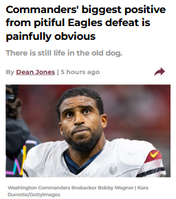 Michael Pitts+FollowBobby Wagner’s epic stand in Eagles vs CommandersBobby Wagner showed he’s still got plenty of fight left, even as the Commanders’ season winds down. Despite the tough loss to the Eagles, Wagner’s relentless energy and sharp instincts were a bright spot for Washington. It’s wild to think his future with the team is up in the air—after a performance like that, how do you let him walk? The Commanders need to get younger, but Wagner’s leadership and grit can’t be ignored. Would you give him another year, or is it time to move on? Let’s hear your take! #Sports #Football #Commanders10Share