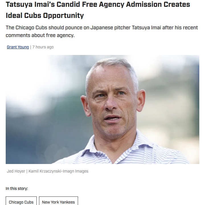 Timothy Huff MD+FollowCubs have a real shot at Tatsuya ImaiStar Japanese pitcher Tatsuya Imai just revealed he hasn’t been flooded with big offers—despite all the hype. With the Yankees possibly sitting this one out, the Cubs suddenly have a golden chance to land a top-tier arm without getting into a bidding war. Imai’s posting window closes soon, so if the Cubs step up with a strong offer, he might just pick Chicago. What do you think—should the Cubs break the bank for Imai, or stick to their usual approach? Let’s hear your take! #Sports #Baseball #Cubs10Share