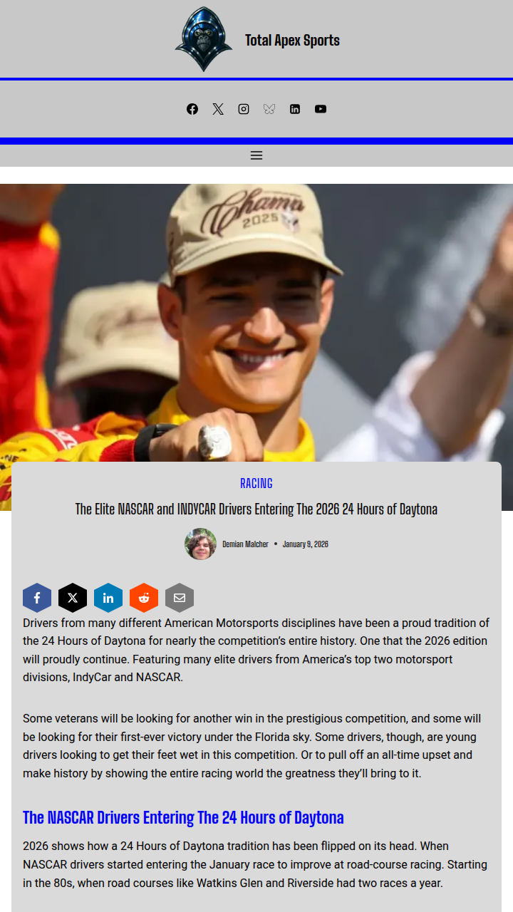 Karla Young+FollowIndyCar vs NASCAR: Daytona 2026 ShowdownGet ready for fireworks at the 2026 24 Hours of Daytona! This year, the classic IndyCar vs NASCAR rivalry takes center stage as legends like King Dixon and Palou team up, while AJ Allmendinger and young gun Connor Zilisch rep the stock car side. With road course skills at an all-time high, who’ll take the bragging rights under the Florida lights? Will experience or youthful hunger win out? Let’s hear your picks! #Sports #Racing #Daytona2410Share