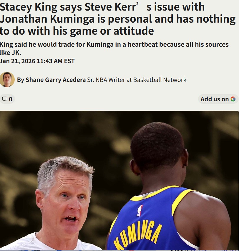 Nicole Obrien+FollowKuminga vs Kerr: Warriors Drama Heats UpAnyone else following the JK saga in Dub Nation? Stacey King just dropped a bomb, saying Coach Kerr’s benching of Kuminga might be personal, not about JK’s attitude or game. After 16 games out, Kuminga finally got minutes vs the Raptors and balled out—20 points in 21 minutes! If King’s sources are right, maybe it’s time to let JK cook. Is this a real beef or just classic Warriors politics? #Sports #Basketball #DubNation00Share