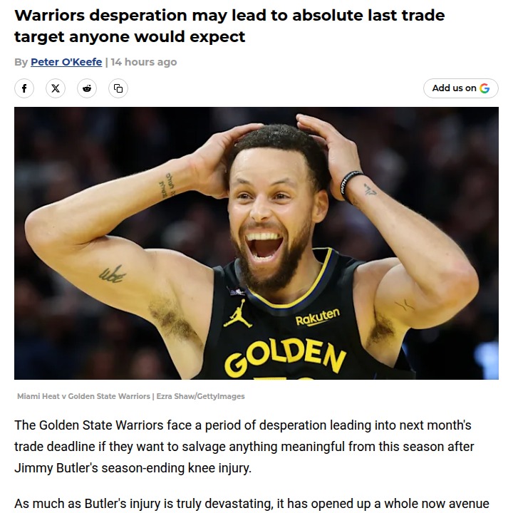 Susan Reeves+FollowWarriors’ Playoff Hopes Take a Major HitDubs Nation, this one stings. After Jimmy Buckets III went down with a torn ACL, the Warriors not only lost a key stabilizer behind Steph, but ESPN’s Bobby Marks confirmed there’s no Disabled Player Exception left to save us. With the trade deadline passed and Kuminga’s flashes still inconsistent, the Warriors’ path forward just got a lot tougher. How do you see Kerr adjusting? #Sports #Basketball #DubNation00Share