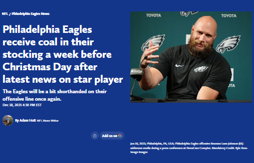 Aaron Taylor+FollowEagles fans brace for key injuries before playoffsLosing Lane Johnson right before a crucial game is a tough pill for Eagles fans, especially with the playoffs on the horizon. He’s been a rock for the offensive line, and his absence—along with Jalen Carter’s—means Philly will have to dig deep against Washington. The good news? The Commanders’ pass rush isn’t exactly fierce, so there’s still hope for a strong showing. With just one win (or a Cowboys loss) needed to clinch the NFC East, every snap counts. How do you think these injuries will impact the Eagles’ playoff push? #Sports #Football #EaglesNation00Share