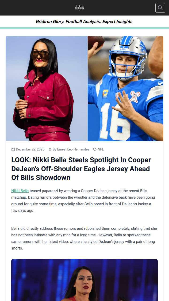 jharvey+FollowNikki Bella & Cooper DeJean: Eagles Rumor MillOkay, Eagles Nation—did anyone else catch Nikki Bella (aka Nikki Garcia) rocking a Cooper DeJean jersey at the Linc? The WWE legend just cranked up the rumor mill by posting a video in full Eagles gear, then disabling comments. With Nikki and DeJean both following and liking each other’s posts, fans are buzzing: is this the start of a Philly power couple, or just some friendly hype? Either way, the Bird Gang is watching! #Sports #EaglesNation #NikkiBella00Share