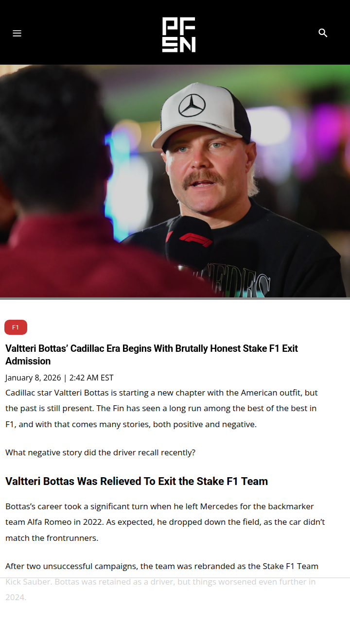 Jeremy Campbell+FollowBottas’ Stake F1 Exit: Honest Words From the FinnValtteri Bottas didn’t hold back when asked about his time with the Stake F1 Team. The Flying Finn admitted he was relieved to leave after a tough, point-less season—calling his move there a “mistake.” Now, with Cadillac and Checo as his teammate, Bottas is looking to turn the page. Do you think this new American chapter will revive his career? #Sports #Racing #F100Share
