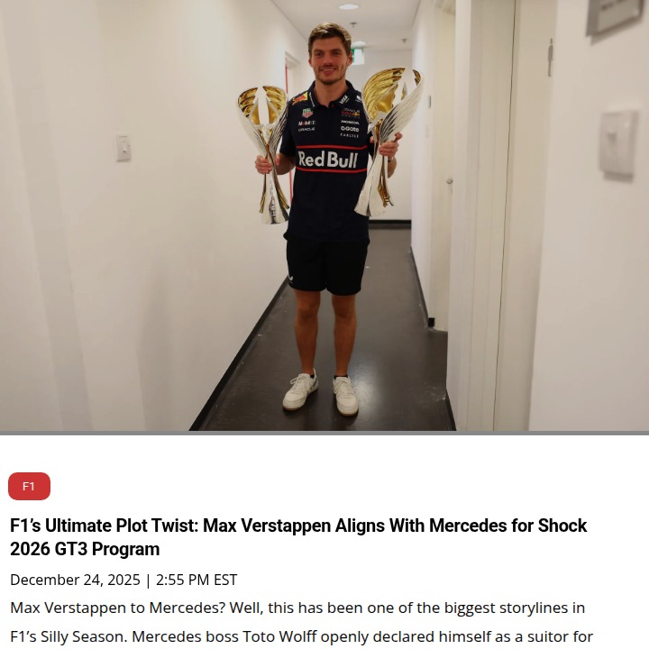 Kyle Bennett+FollowVerstappen & Mercedes: GT3’s New Power Duo?Plot twist alert: Mad Max is teaming up with the Silver Arrows, but not in F1! While Red Bull kept Verstappen locked for another season, his Verstappen Racing squad will join forces with Mercedes-AMG in the GT World Challenge Europe from 2026. After crushing his GT3 debut, Max’s crew ditches Aston Martin for AMG power. Could this be the start of a new motorsport rivalry? Let’s hear your takes on Verstappen’s bold move! #Sports #Racing #F110Share