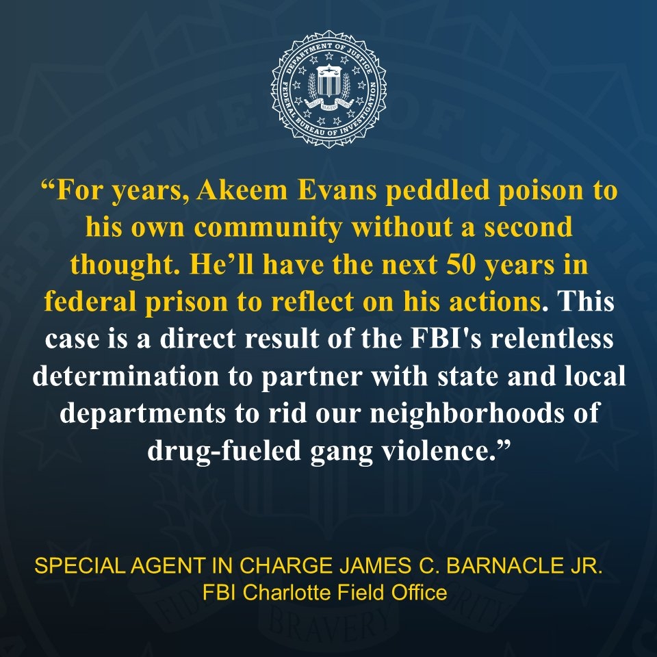 Larissa wilson+FollowNorth Carolina Drug Kingpin Sentenced to 50 Years in Federal Prison, FBI Says Federal authorities have announced a major sentencing in a long-running drug trafficking case in North Carolina. According to court records and the FBI Charlotte Field Office, Akeem Netron Holder Evans, 36, was sentenced to 50 years in federal prison for operating a large-scale drug trafficking organization based in Raleigh and surrounding areas. Investigators say Evans ran the operation from multiple residences, used stash houses, encrypted communications, and other countermeasures to evade law enforcement. Authorities also revealed that Evans exploited personal relationships, including persuading his former childhood football coach to transport kilogram quantities of cocaine. The case was the result of a joint federal investigation, underscoring continued efforts to dismantle organized drug networks.#FBI #DrugTrafficking #FederalCourt #NorthCarolina #CrimeNews #LawEnforcement #JusticeServed #NewsBreak23Share