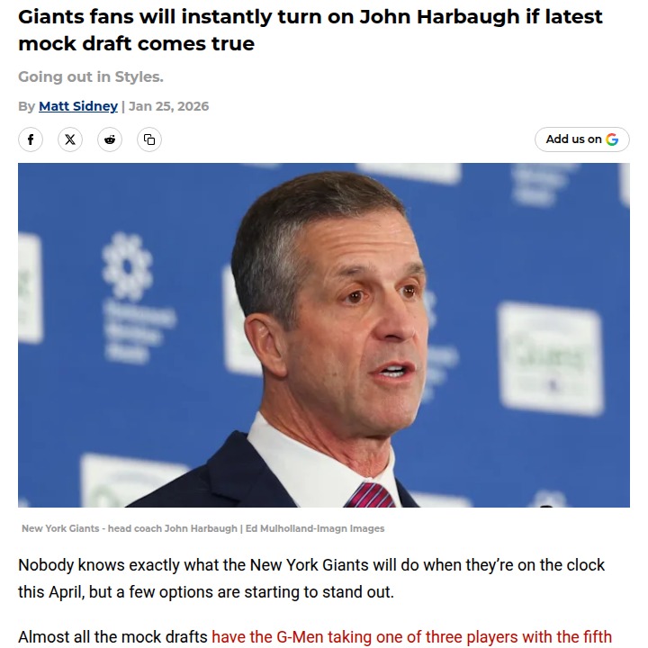 Jay Williams+FollowGiants fans divided over shocking draft predictionThe latest mock draft has thrown a curveball at Giants fans: instead of picking an offensive weapon or lineman, the Giants are projected to grab linebacker Sonny Styles at No. 5. This is a real shake-up, since linebackers rarely go this high and most fans expected help for new QB Jaxson Dart. The move is all about fixing last year’s terrible run defense, but it’s got people wondering if this is the right call—especially with so many needs on offense. Would you take a chance on Styles, or stick with the safe pick? Let’s hear your take! #Sports #Football #Giants00Share