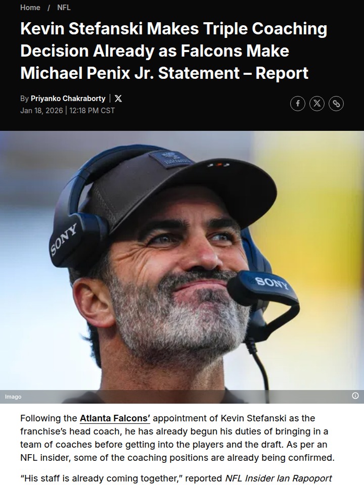 Aaron Taylor+FollowStefanski Shakes Up Falcons’ Coaching StaffDirty Birds fans, what do you think of new HC Kevin Stefanski’s first big moves? He’s keeping Ulbrich as DC, bringing in Tommy Rees as OC, and adding O-line guru Bill Callahan. Meanwhile, Matty Ice is backing rookie QB Michael Penix Jr. to lead the charge. Is this the spark Atlanta needs to heat up the NFC South rivalry? Let’s hear your takes! #Sports #Football #Falcons64Share