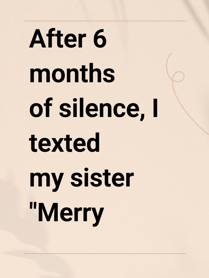 ljones+FollowAfter 6 months of silence, I texted my sister "Merry Christmas.We fell out over family assets. But looking at old photos, all I remembered was her holding my hand when we were little. I hesitated for an hour, then hit send. She called back three seconds later, crying. Pride is worth nothing compared to family. #Reconciliation #FamilyLove #Forgiveness #HolidayHealing61Share