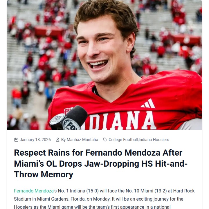 John Camacho+FollowFernando Mendoza’s Miami homecoming: All eyes on the HoosiersFernando Mendoza, raised in Miami and now leading Indiana’s undefeated run, is about to play the biggest game of his life—right in his hometown. What’s wild is that Miami tried hard to bring him back last year, but he chose Indiana for family and growth, not money. Even with the championship on Miami’s turf, Mendoza’s focus is all about the team, not the spotlight. His story is packed with hometown ties, loyalty, and big-game pressure. How do you think playing at home impacts a player’s mindset? Let’s hear your thoughts! #Sports #Football #FernandoMendoza10Share