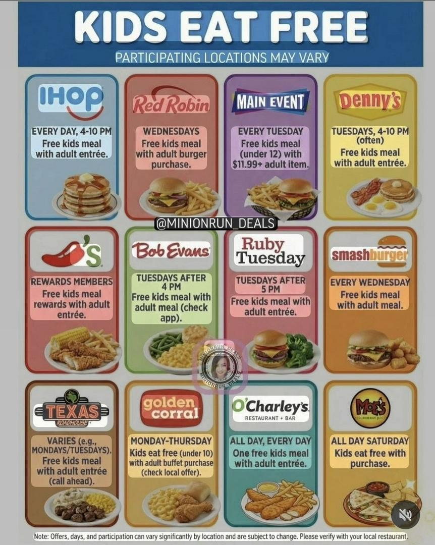 Dashcamgram+FollowQuick reminder for parents looking to save: a lot of restaurants are offering Kids Eat Free deals at select locations. These specials can be a huge help for families, especially on busy nights when cooking isn’t an option. Just keep in mind that offers vary by location, day, and time, so it’s always best to double-check before you go. If you know of any good spots that do this, drop them in the comments so other parents can benefit too. Free meals add up, and every little bit helps. #KidsEatFree #FamilySavings #ParentLife #BudgetFriendly #FamilyMeals #SavingMoney #FoodDeals70Share