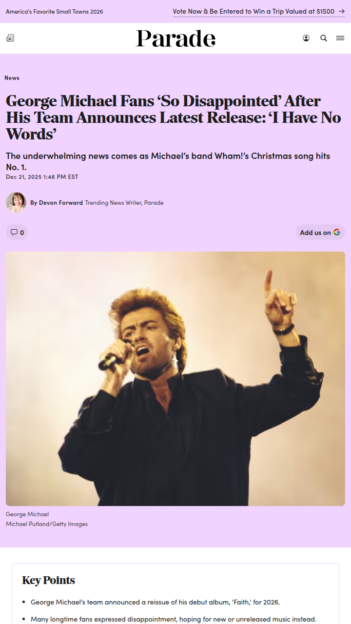 Andrea Hebert+FollowGeorge Michael Fans Divided Over Faith Reissue 😬George Michael’s team just announced another Faith reissue and fans are seriously split. Some are thrilled to finally get new vinyl versions, but longtime fans are venting that it’s just the same old songs again. The fandom is buzzing about whether the estate should drop unreleased tracks instead of more reissues. Are they milking the catalog or just giving new fans a chance? The debate is real! #Entertainment #Music #GeorgeMichael00Share