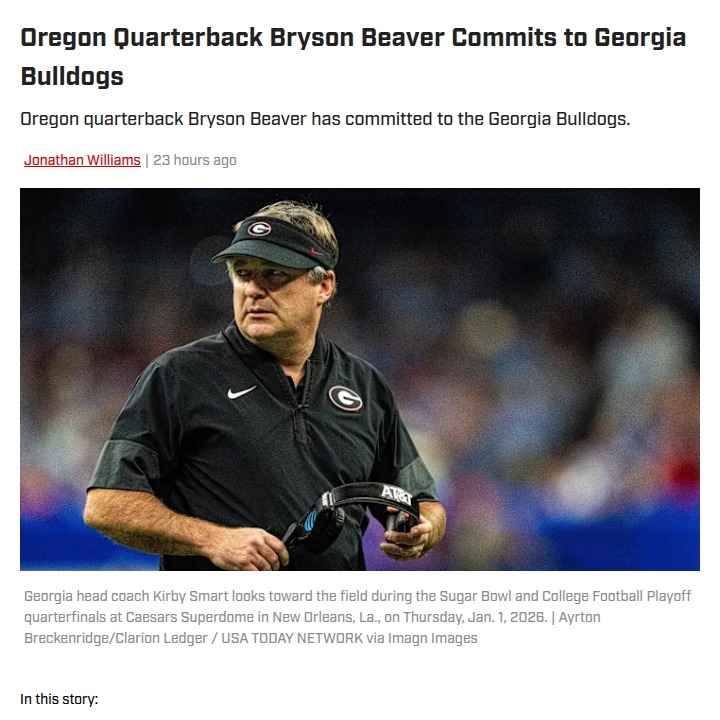 phughes+FollowBeaver Bolts: Dawgs Land Oregon QB TransferBig news out of Athens! The Dawgs just scored a major portal win by landing Bryson Beaver, the former Oregon four-star QB. With Dante Moore staying put and Dylan Raiola heading to the Ducks, Beaver chose to join the Bulldog Nation. This move could heat up the Dawgs’ QB room and add some real competition. How do you think Beaver stacks up against the SEC’s best? #Sports #Football #GeorgiaBulldogs00Share