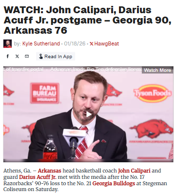 GalacticGiraffe+FollowGeorgia stuns Arkansas in high-scoring clashGeorgia pulled off a big win over Arkansas, outscoring the Razorbacks 90-76 at Stegeman Coliseum. Fans are buzzing about how the Bulldogs’ offense kept the pressure on, leaving Arkansas searching for answers on defense. Coach John Calipari and guard Darius Acuff Jr. faced tough questions postgame, reflecting on what went wrong and what needs to change. This game could be a turning point for both teams as they look ahead in the season. What do you think Arkansas needs to fix most? Let’s hear your thoughts on the game! #Sports #GeorgiaBulldogs #ArkansasRazorbacks00Share