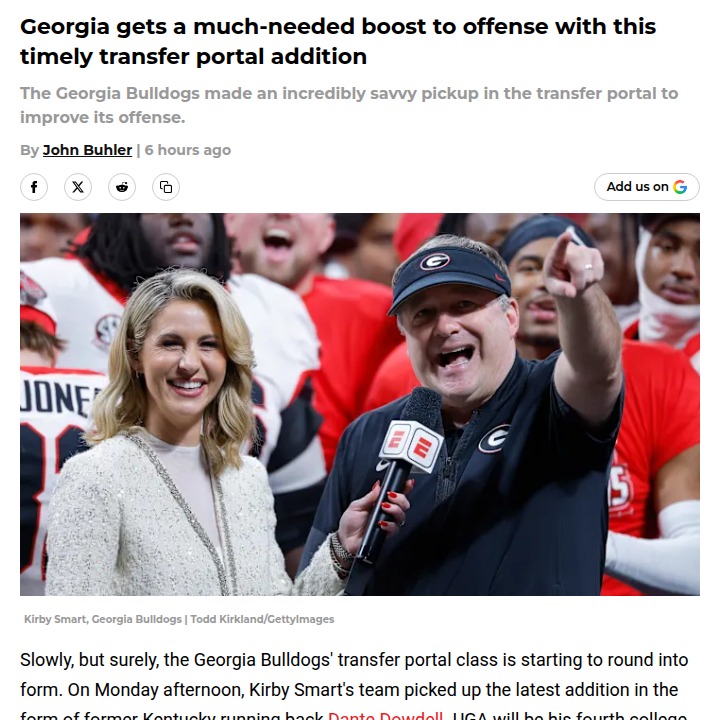 Jeffrey Armstrong+FollowGeorgia’s offense gets a power boostDante Dowdell is joining the Georgia Bulldogs, and that’s a big deal for anyone following UGA football. With experience at Oregon, Nebraska, and Kentucky, Dowdell brings fresh legs and grit to Georgia’s running game—just when it’s needed most. This move isn’t just about depth; it’s about keeping Georgia’s ground attack fierce and competitive in the SEC. Plus, with rumors swirling about coaching changes and more transfer action, it feels like Georgia is gearing up for another serious run. What do you think—will Dowdell be the missing piece for Dawg Nation next season? #Sports #Football #GeorgiaBulldogs00Share