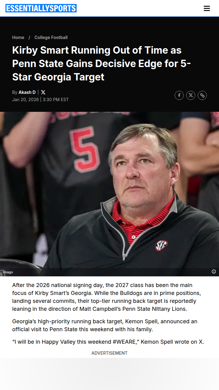 phughes+FollowGeorgia vs Penn State: Spell's Recruiting SagaDawg Nation, it’s getting tense! Kirby Smart looked like he had five-star RB Kemon Spell locked in, but now the Nittany Lions are roaring back. Spell’s family trip to Happy Valley this weekend could tip the scales, especially with Matt Campbell and Savon Huggins building a strong bond. Is Georgia losing its grip on this top-tier talent, or can Kirby pull off a last-minute win? Let’s hear your takes on this recruiting rivalry! #Sports #Football #GeorgiaFootball00Share